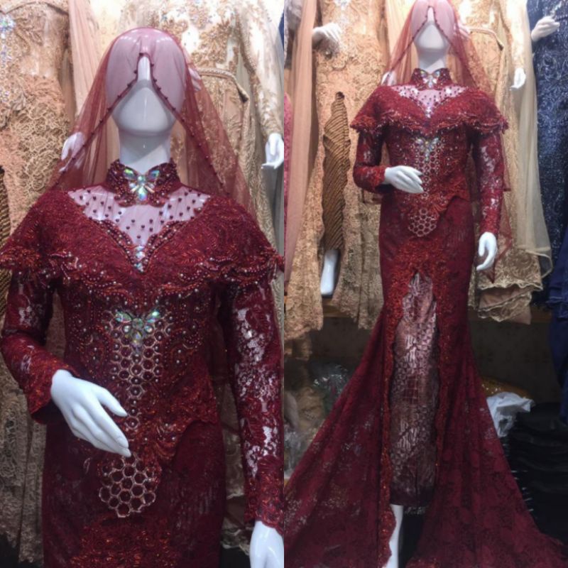 Inspirasi terbaru 37 baju pengantin songket warna maroon.